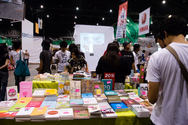 I have no idea what FAT Festival is until my friend mentions and asks me if I want to go. It turns out to be one of the coolest things I find in Thai youth culture. I’d rather hang around in there than see free Limkin Park concert which is on right next to the festival in the same convention complex but cameras with zoom lenses are not allowed. The event is organised by a Bangkok radio station, fm 104.5 Fat Radio, to promote independent artists in music, film etc. It is joyful to see they have the outlet to show off their creativities. Bangkok is branding itself as a new creative hub. I strongly believe it cannot be done without these promising young professionals.